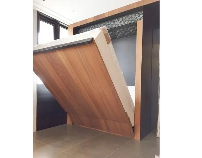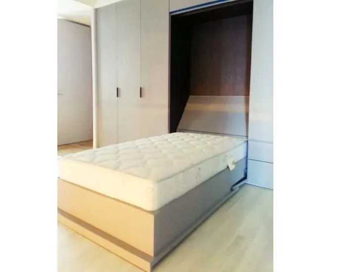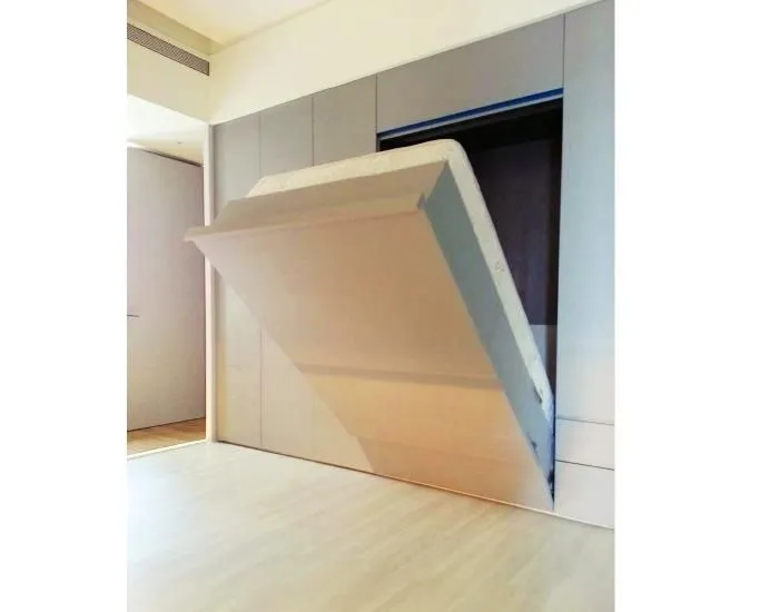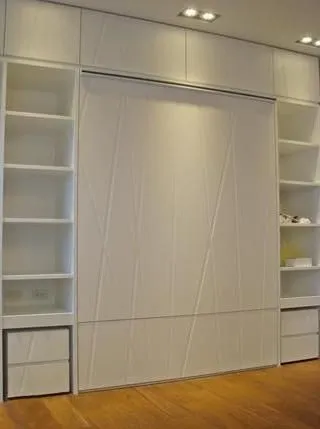 穩定、安全、便利的操作性能。此產品特別適用在都市的狹小空間裡,收納後外觀是衣櫥,放下後即是溫暖的床。也適合用於辦公室,在辦公室擺設床組不雅觀,安裝電動搖控收納床,收納後,讓您在辦公室仍有完美的休憩空間。也適合安裝在客房、工作室、VIP病房、小套房.....等。