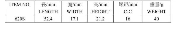 620S:長52.4 x 寬17.1 x 高21.2 mm 重40 g