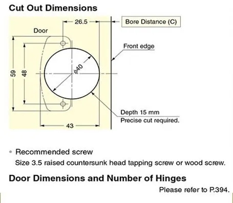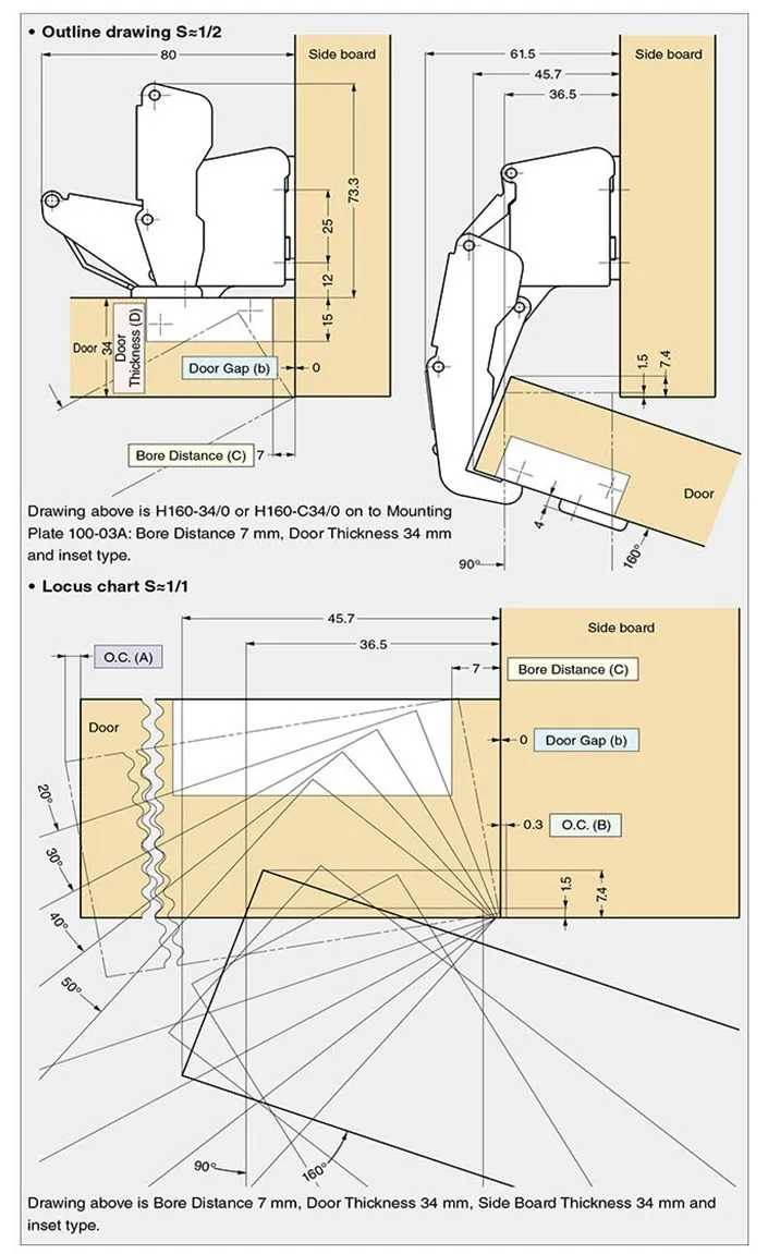適用門板厚度(18~34mm),直徑40mm 。有六分、三分及入柱等規格。