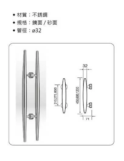 台製玻璃門把手-不鏽鋼