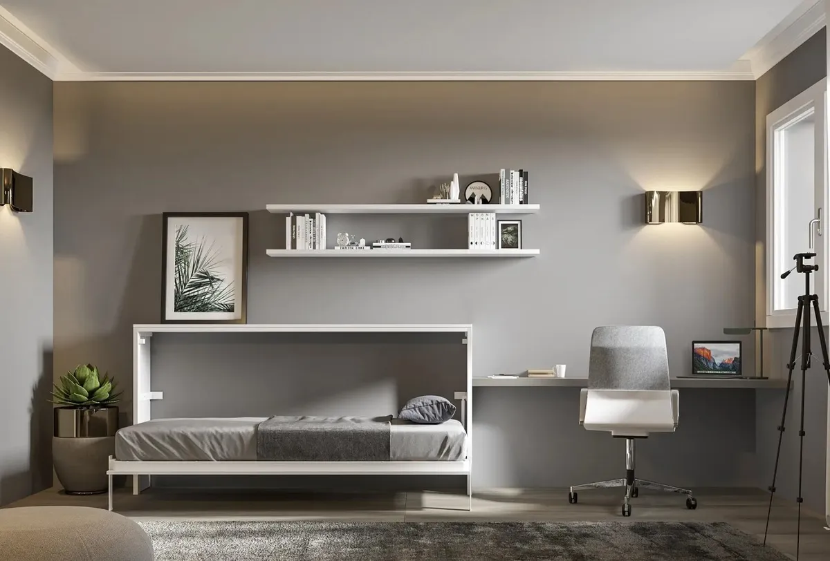 本產品為義大利原裝進口,功能齊全的側掀床五金,下掀時,有安全的緩衝功能,操作輕鬆省力。適合應用於小套房、書房、兒童房....等。