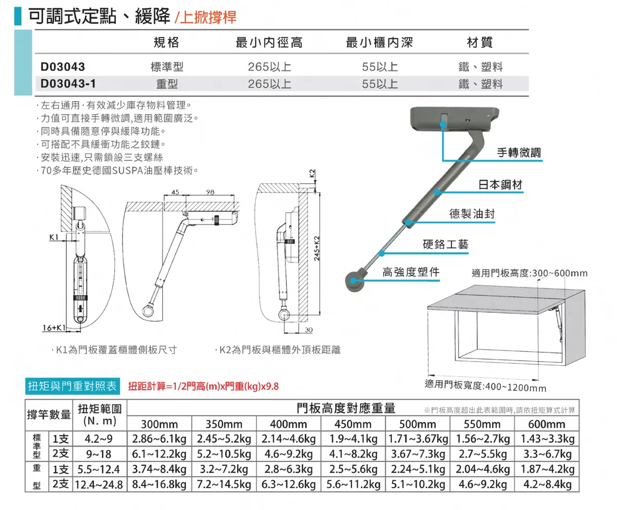 德國SUSPA-可調式定點-緩降(上掀撐桿)