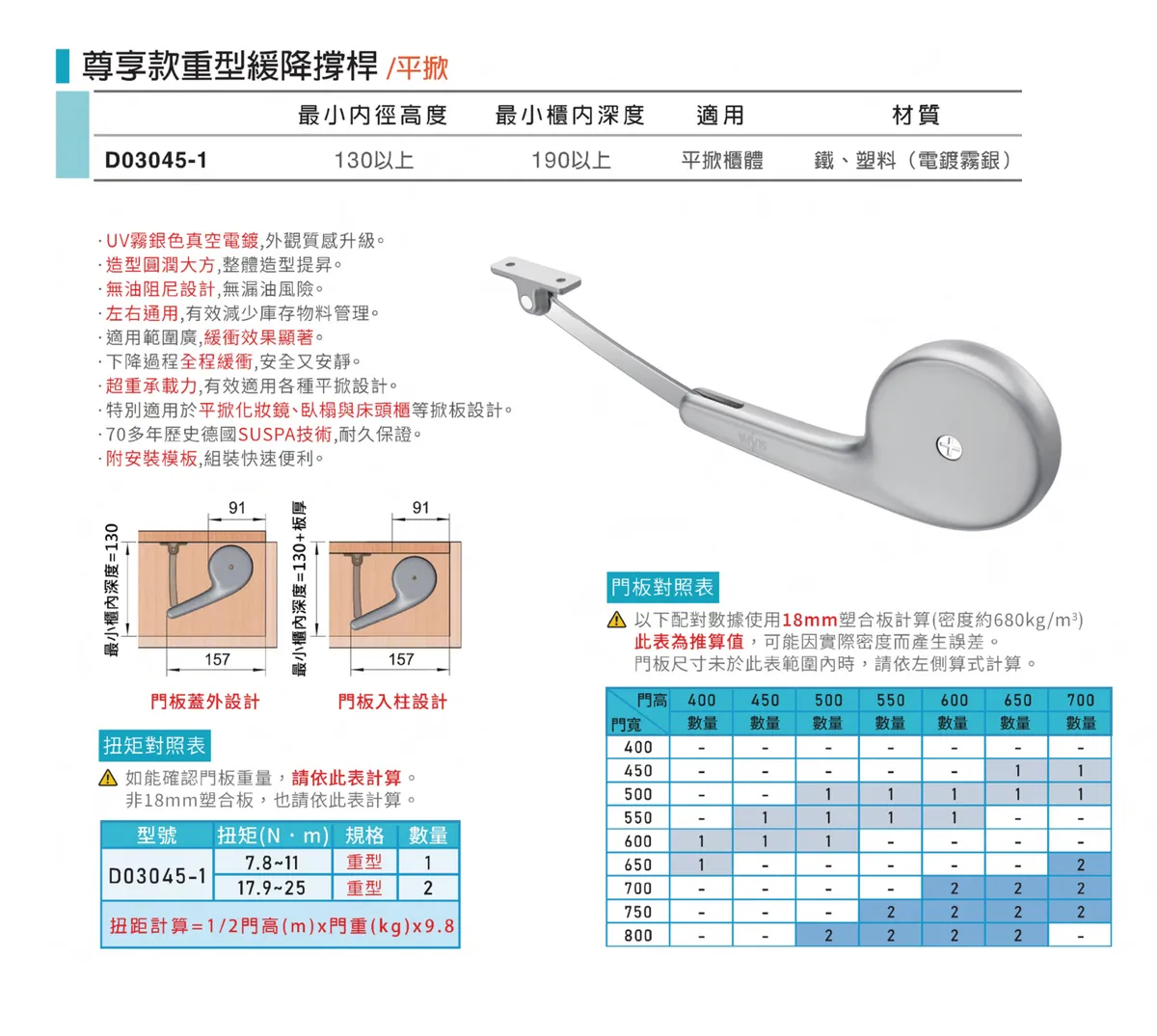德國SUSPA-尊享款重型緩降撐桿(平掀)