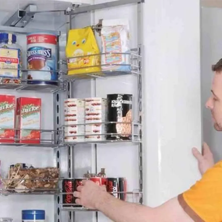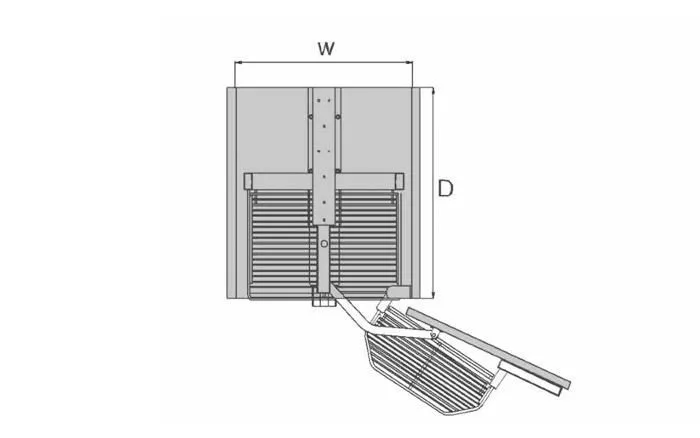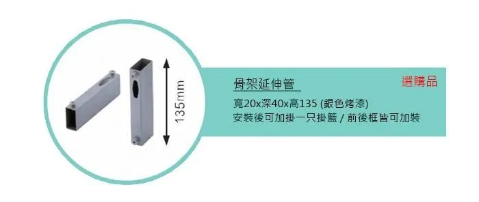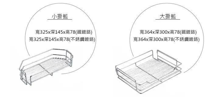 櫃體內徑尺寸 W : Min. 414 D:Min. 510 H:1225~1570 :1765~2110 產品特點 1.外框載重10KG 2.內框載重30KG 3.建議使用135度以上鉸鏈,以達最佳使用效果 4.主體鐵烤閃銀漆 5.最大承載重量30KG