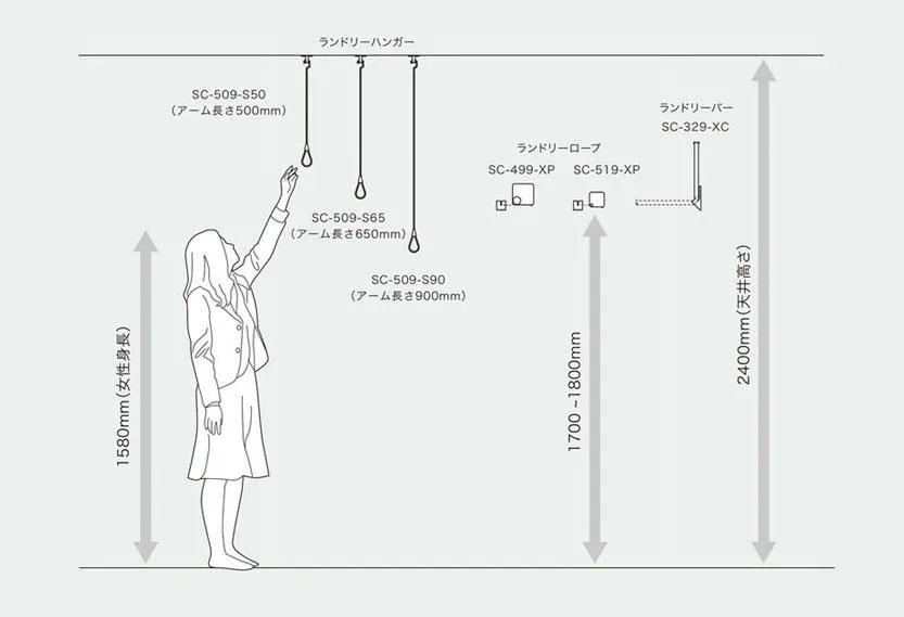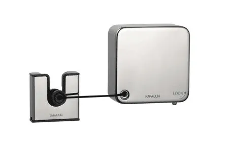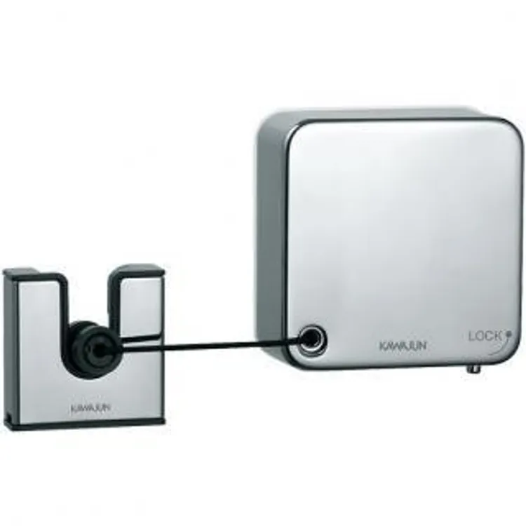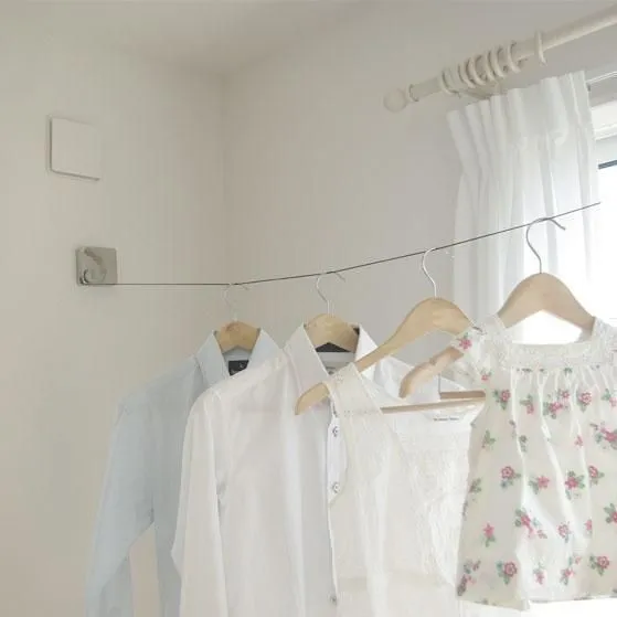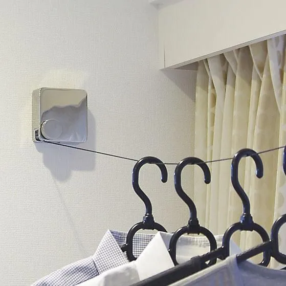 本體材質: 不鏽鋼+黃銅+鋅合金電度繩索材質: 不鏽鋼+POM樹脂表面處理: 鏡面+鍍鉻耐重: 3kg。繩索長度: 約2.7m (適用對應牆面距離約2.7m以內)。適用於住宅、套房、飯店客房、浴室、陽台旋轉鈕可調整繩索長度P.S. 具有帶鎖功能&可在浴室使用。吊衣繩的長度拉出確定後,可上鎖避免掛衣服時繩子下垂具有上鎖功能 應用範例