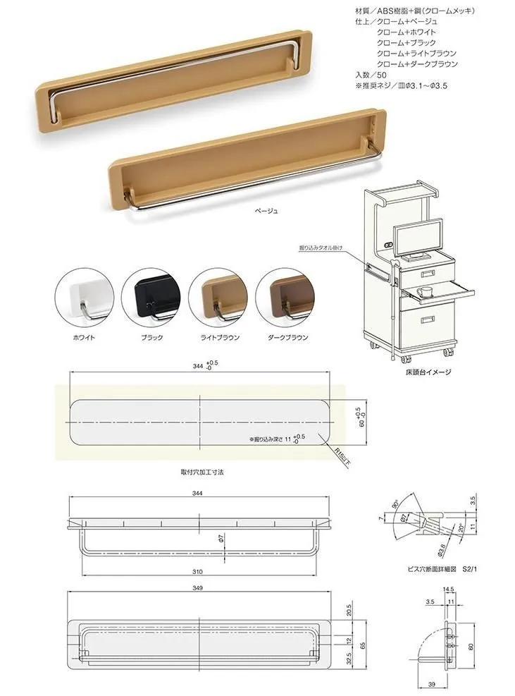 隱藏式毛巾桿-白色