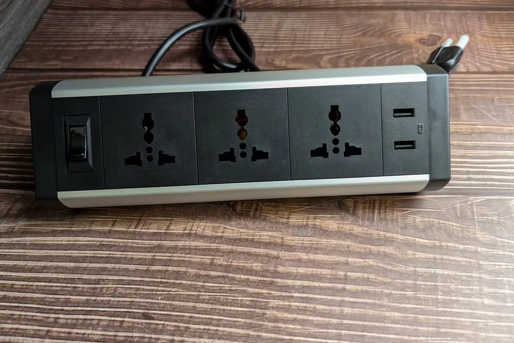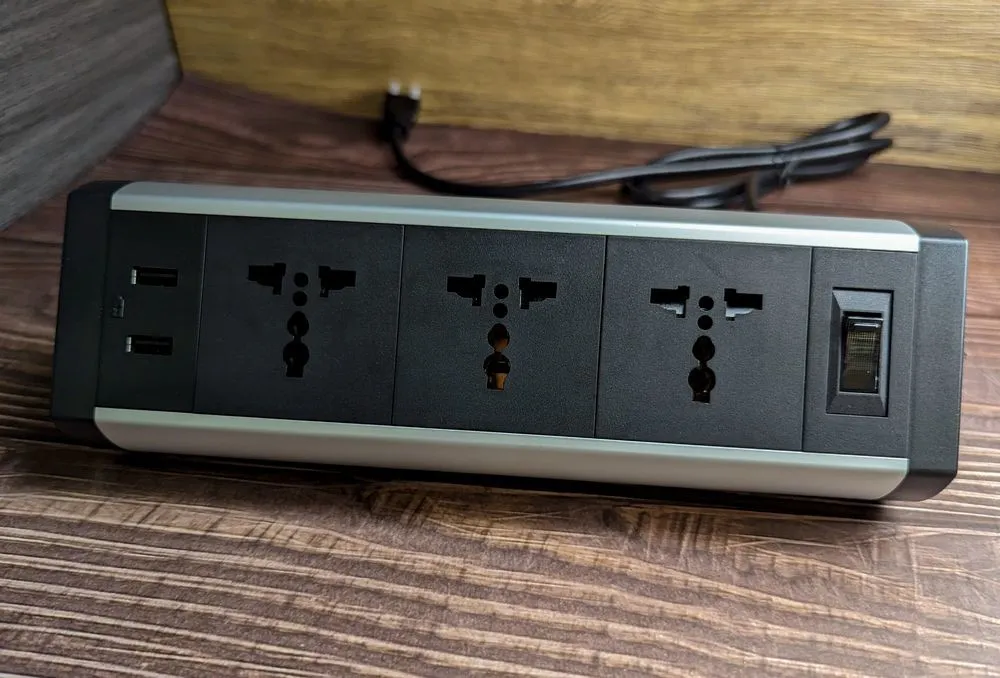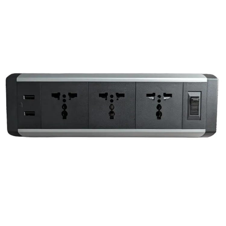產品尺寸:245X82X77 mm電壓:110/220 V通用產品顏色:銀色外殼材質:鋁合金+ABS適用範圍:辦公室、書房等配置: 萬國插座*3、充電雙USB*1