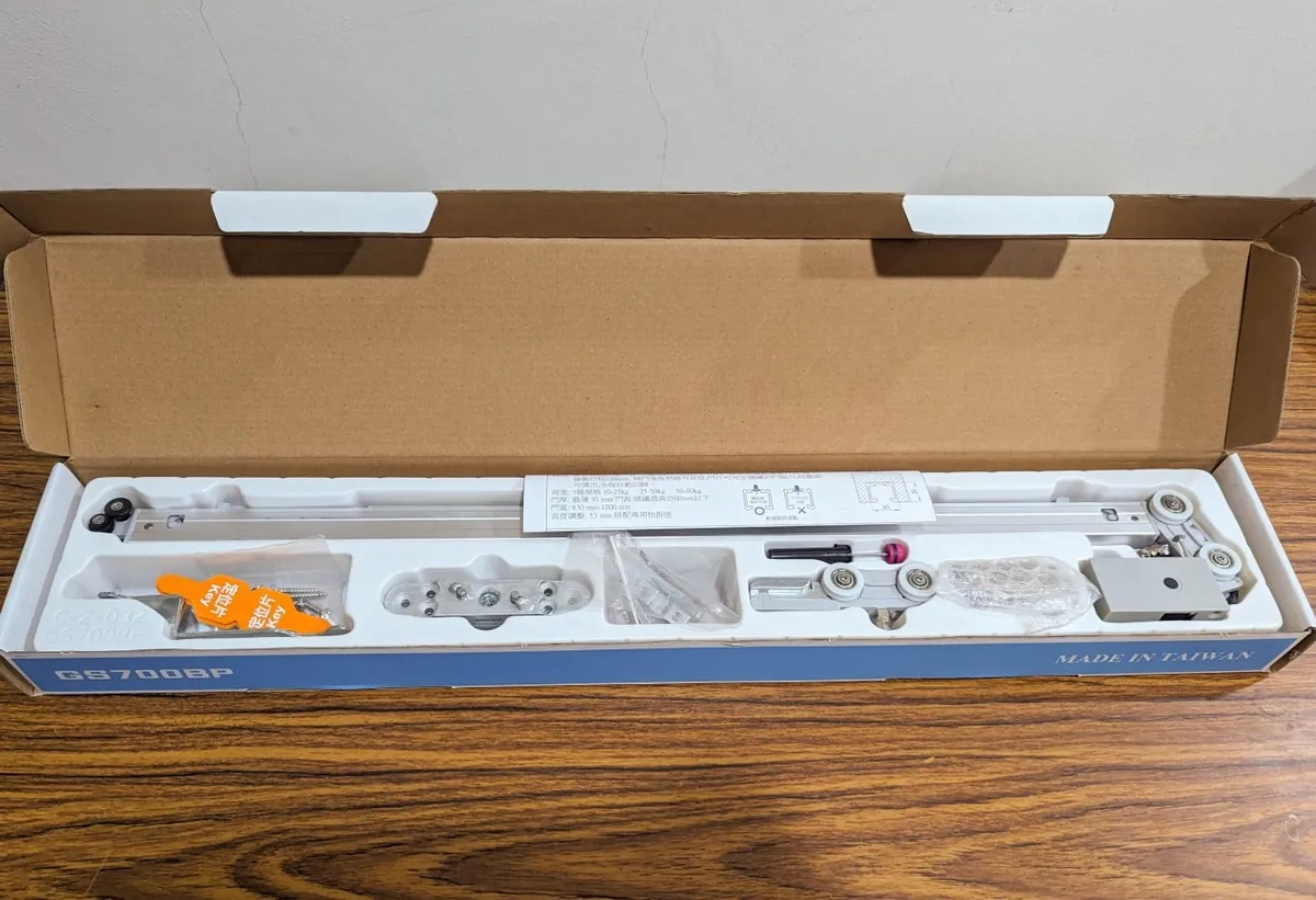 荷重:50 - 80 kg門寬:830 - 1200 mm門厚:最薄 30 mm 最大緩衝行程:220 mm高度調整: ±3 mm (搭配專用快拆座)附:鋁軌道螺絲 6 (pcs)、門片快拆座螺絲 12 (pcs)