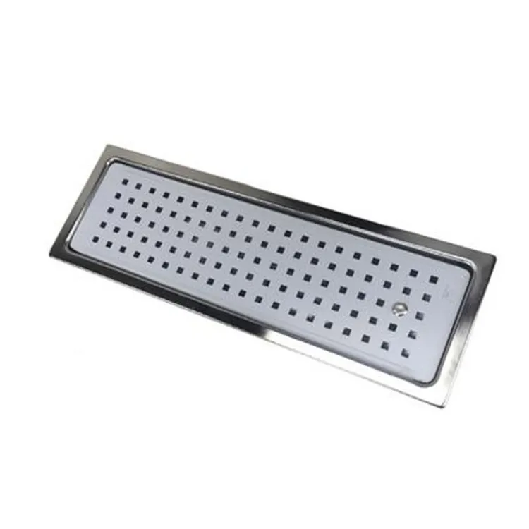 名稱:不鏽鋼地排、水門、集水槽、落水頭材質:不鏽鋼#304材質集水槽尺寸:10x 30cm洩水孔尺寸: Ø2"或1 1/2" (訂貨時請註明)水門: 不鏽鋼材質 或PVC (訂貨時請註明)特點:快速排水且具有防蟲防臭功能用途:乾濕分離浴室、廚房、室外排水