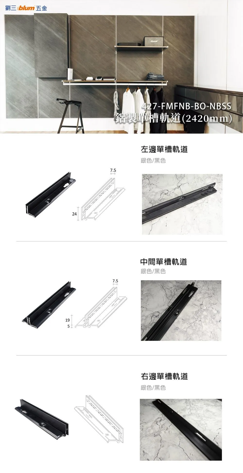 5.軌道可承載最多200kg以內的壁板, 另可搭配專用層板架手。