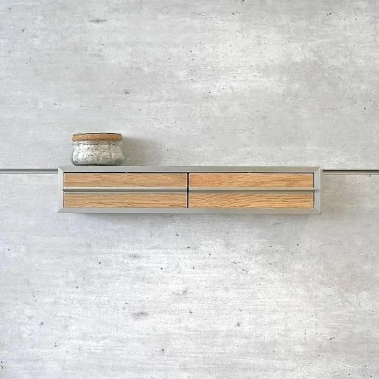 材質:實木 (橡木)+鋁(霧黑刷線表面)尺寸:W485*H80*D118 mm※需搭配專用H8 內崁軌道此產品為開介後接駁,因材料內為鋁合金,所以霧黑掛件可能會有小地方露白並非產品瑕疵。 若會介意,請勿下單。 應用範例