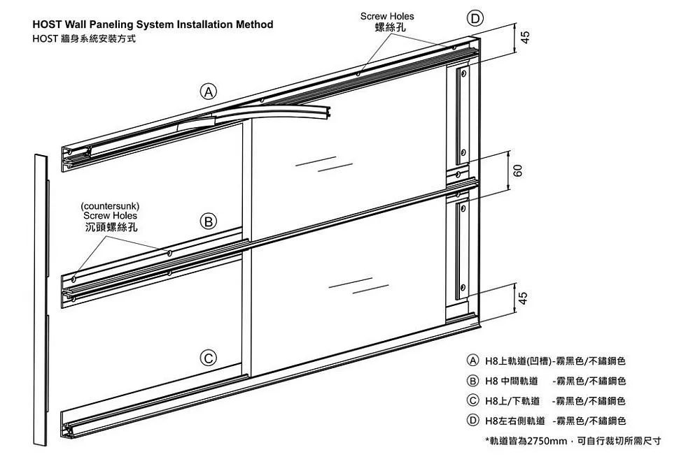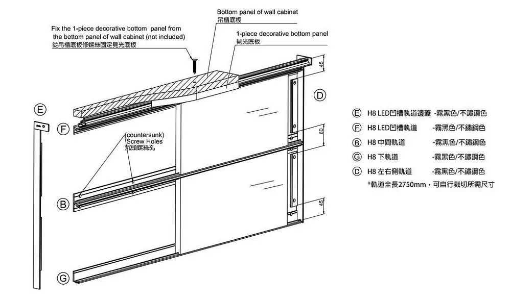 H8內崁中間軌道-不鏽鋼色