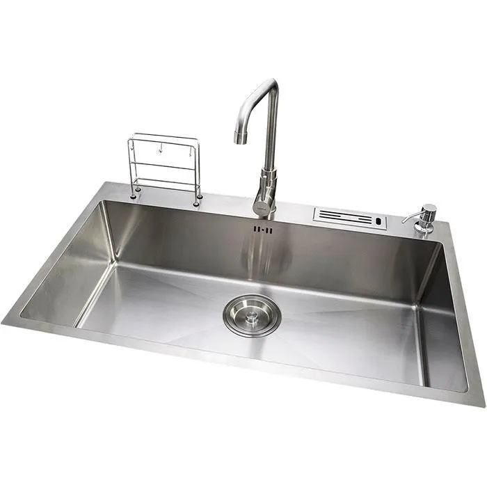 標準配件: ST雙層中提籠(S彎管式)、菜刀架、掛架、不鏽鋼給皂器(圓/方)、水龍頭孔(35mm 孔徑)、消音墊