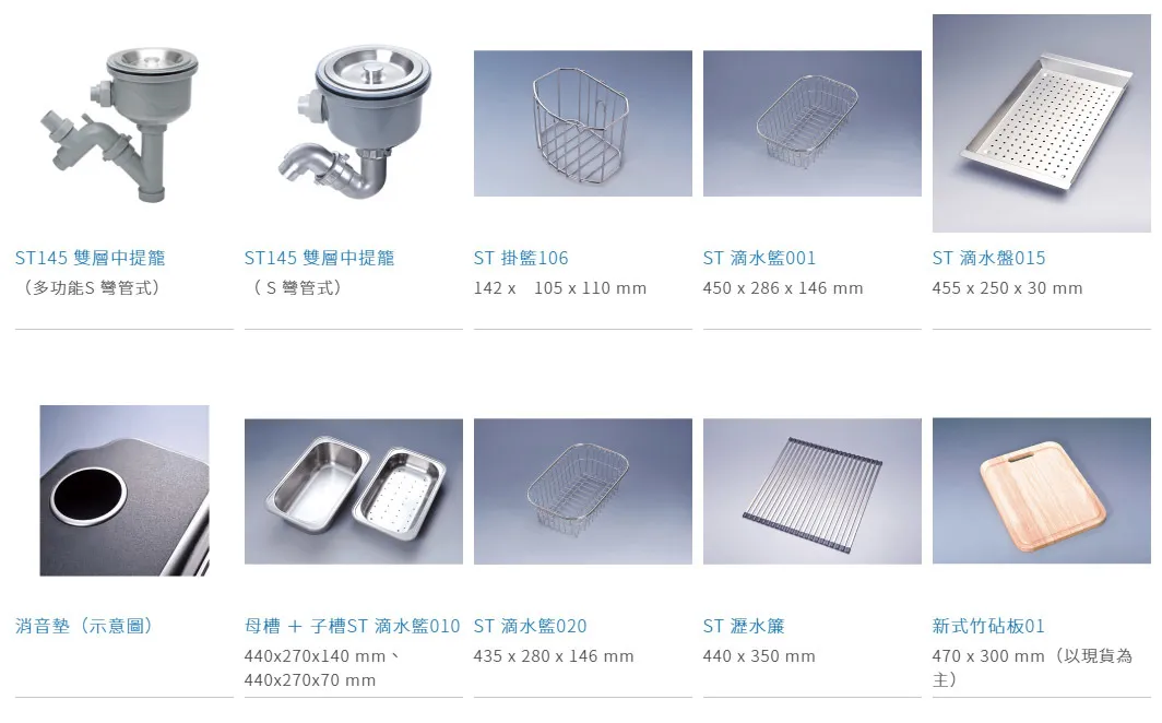 材質:不鏽鋼外徑尺寸: 880×460x210mm內徑尺寸: 840×420×210mm表面處理: 毛絲面加工方式: 下嵌工法附屬配件: ST 雙層中提籠(S彎管式)、消音墊可另購配件: ST雙層中提籠(多功能S彎管式、S彎管式)、ST滴水籃、ST滴水盤、ST掛籃、新式竹砧板、母槽+子槽ST滴水籃、ST瀝水簾、消音墊 另購配件: