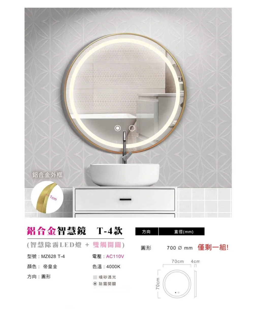 鋁合金智慧圓鏡-皇帝金(僅剩一組)