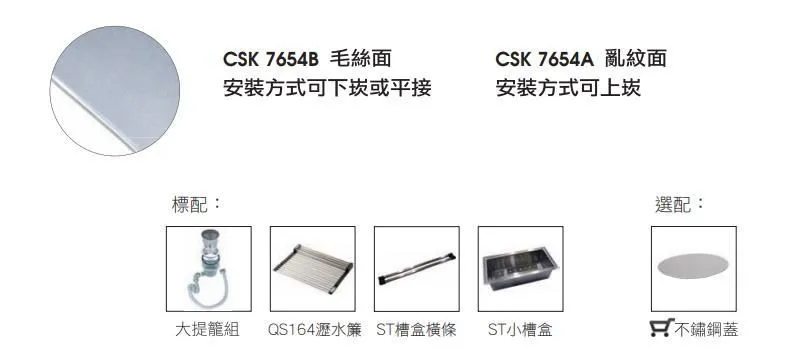 毛絨面不鏽鋼手工水槽-凸槽(W800mm櫃體適用)