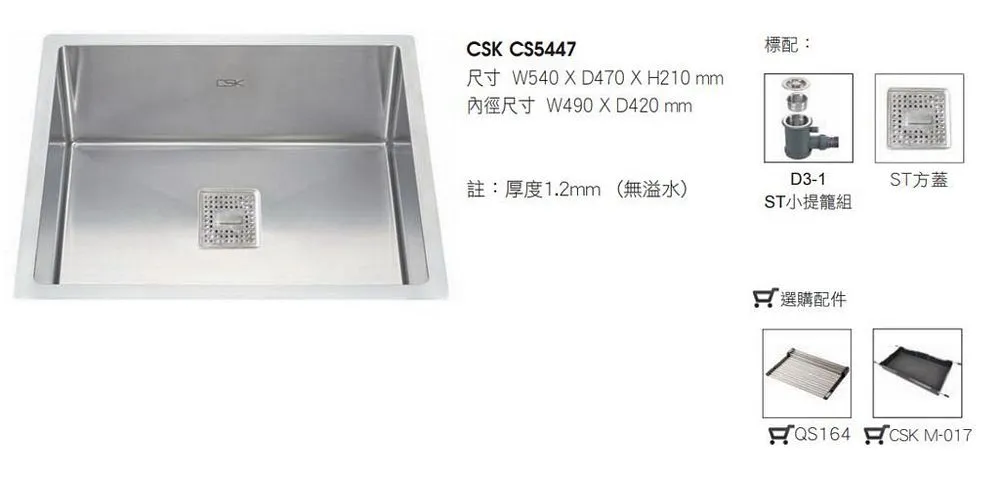 獨創不鏽鋼手工水槽(W600mm櫃體適用)