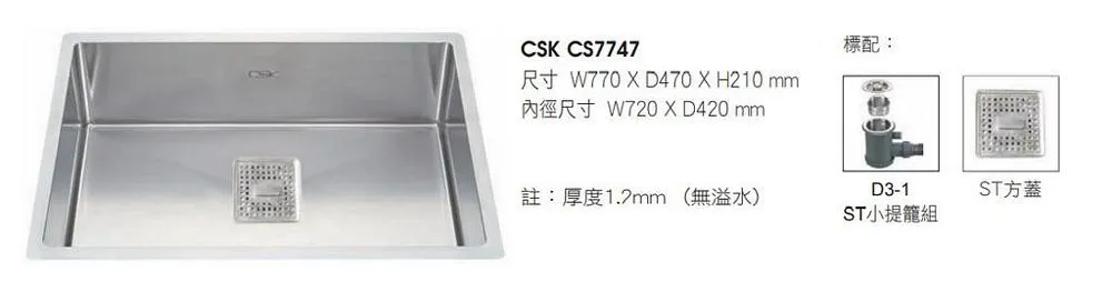 獨創不鏽鋼手工水槽(W800mm櫃體適用)