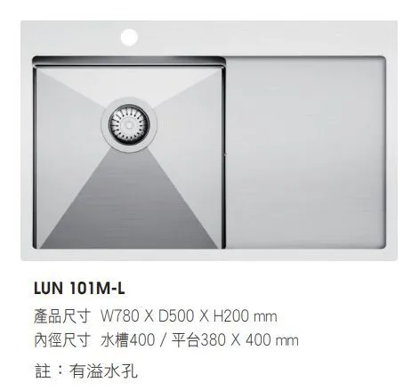 歐洲不鏽鋼水槽(W800櫃體適用)