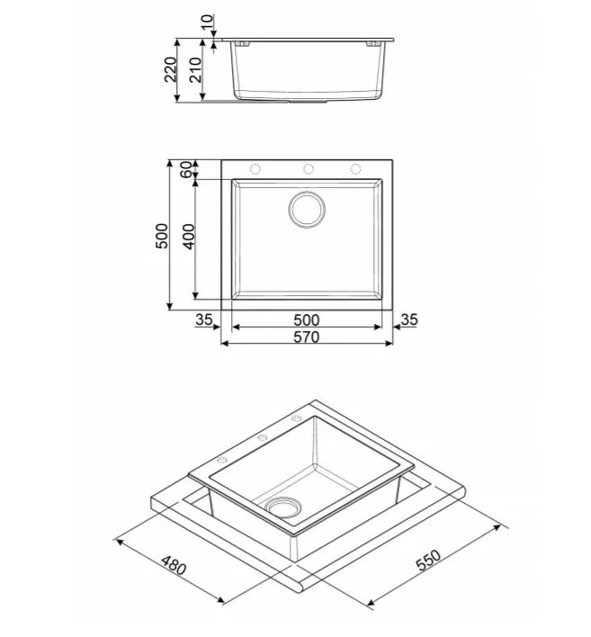 產品型號 : 439-VZ57N-97 義大利花崗岩水槽(W600櫃體適用)