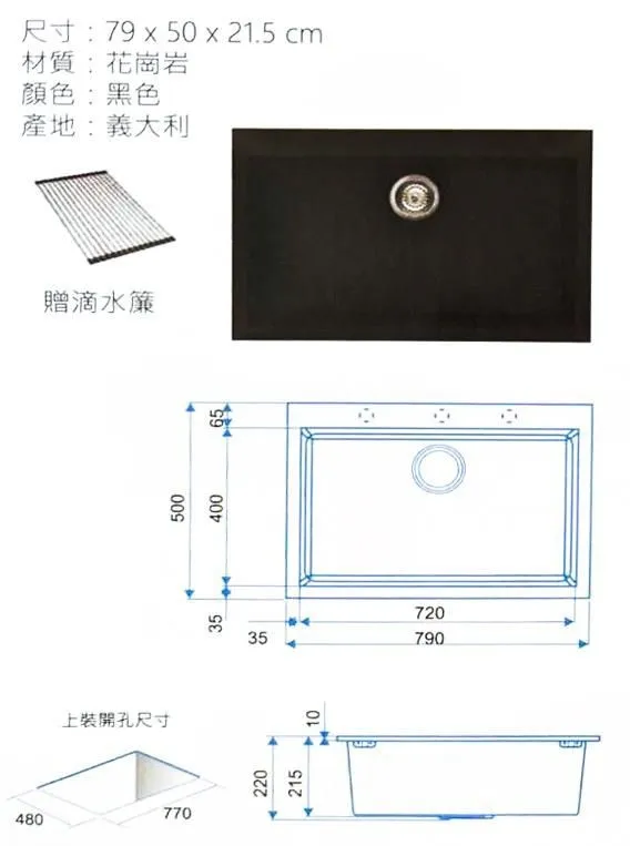 產品型號 : 439-VZ79N-97 義大利花崗岩水槽(W800櫃體適用)
