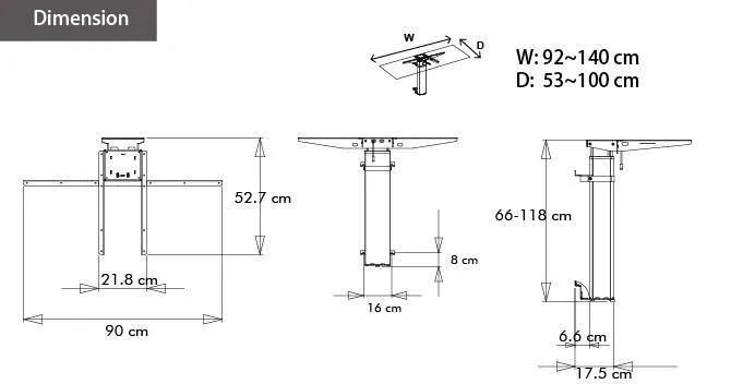 適用桌板:92-140cm x 深53-100cm。