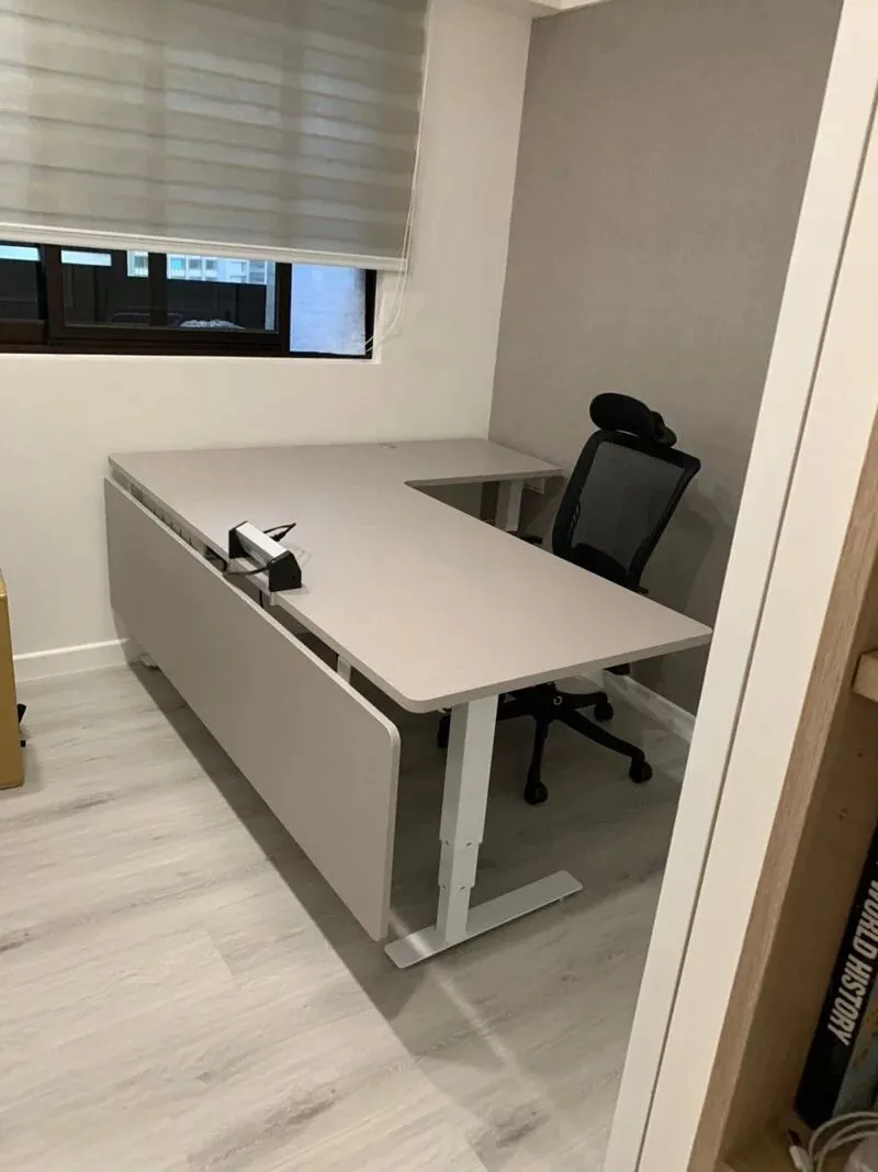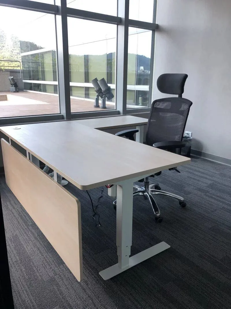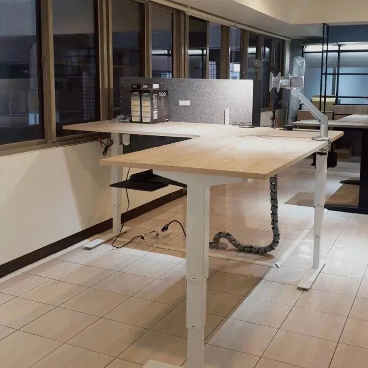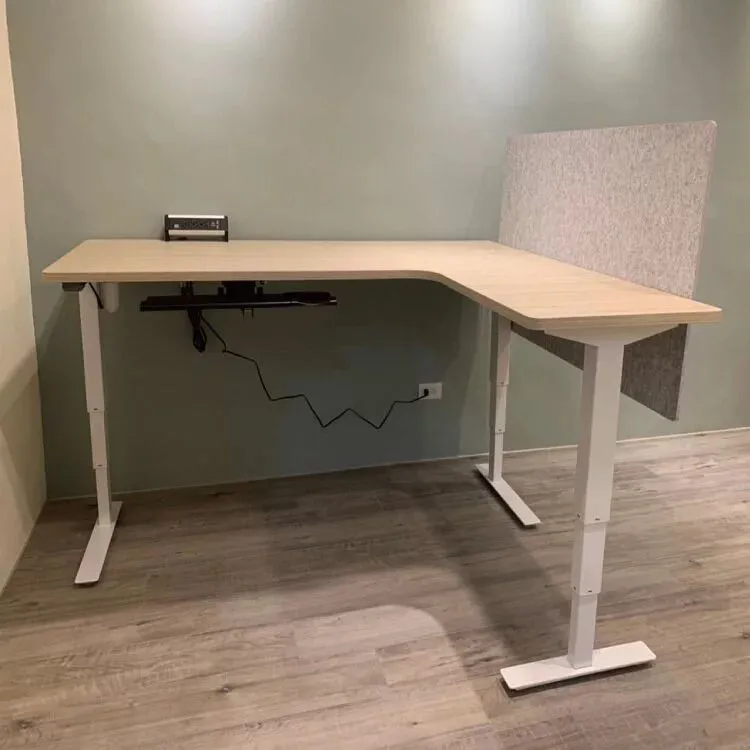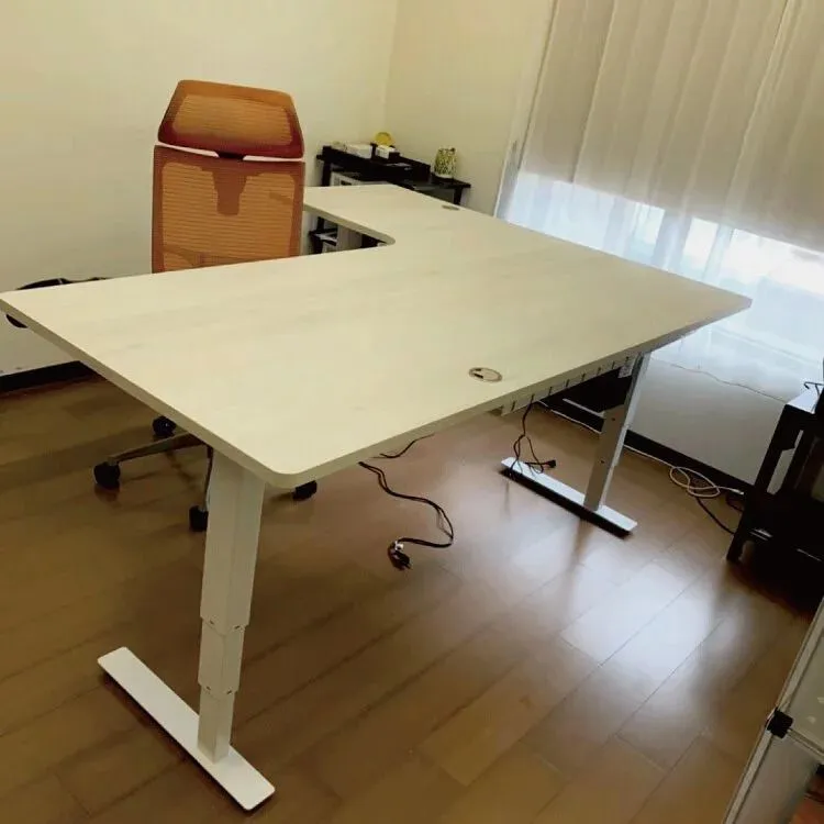 產品規格:適合 正面桌寬 180 cm 以上/側桌面深 153 cm高度: 55-120cm載重: 100 kg (最低需承載: 10 公斤,三支桌腳均需受力)升速: 27mm/sec功耗: 100w(行進中) ; 0.9w (待機)規格選擇:白色桌腳桌板選擇: 只買桌腳/180 x 70 x 160 x 60 cm功能特色:1. 專門搭配L型桌板設計2. 三節式設計,可升降範圍大*圖片僅供參考,請以實際物品為準。 應用範例