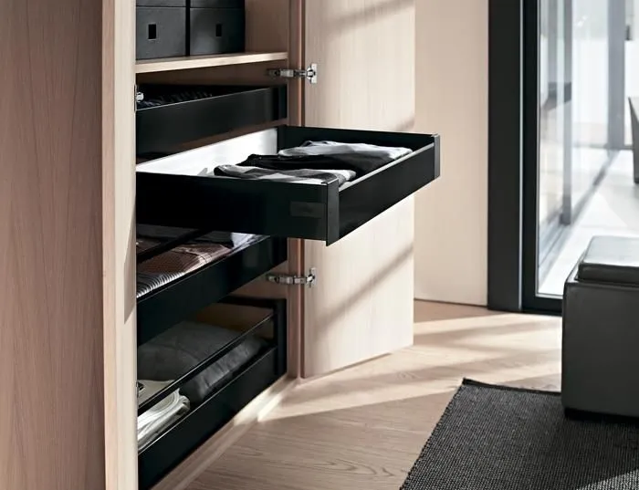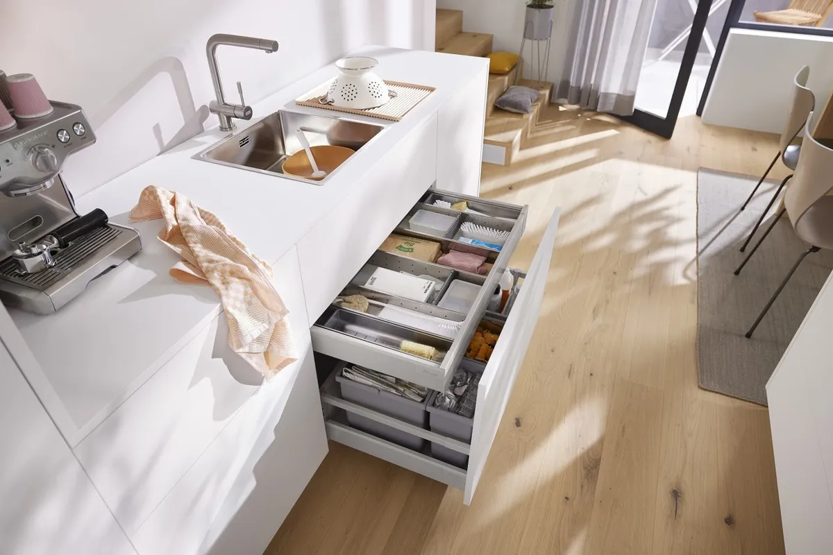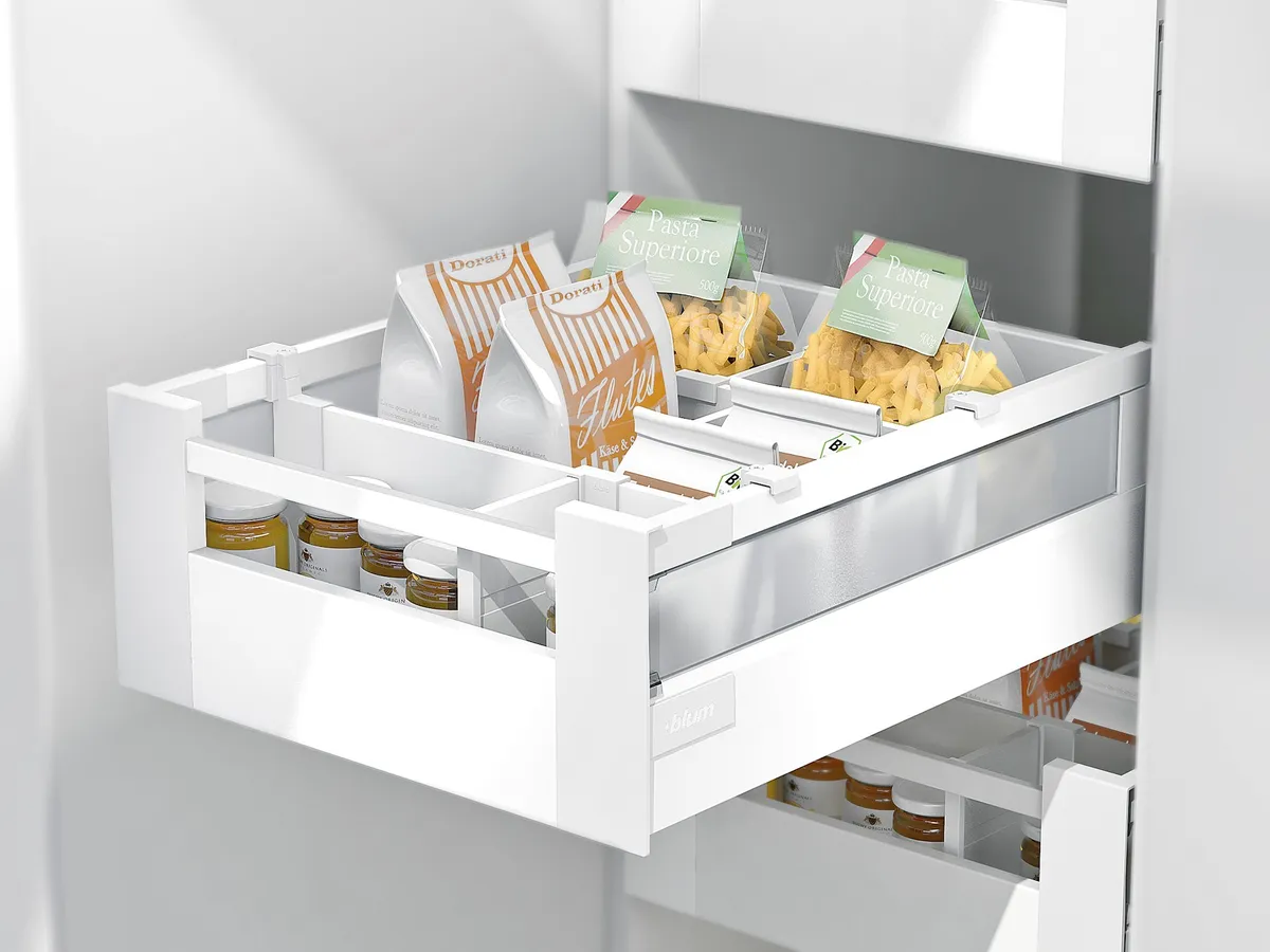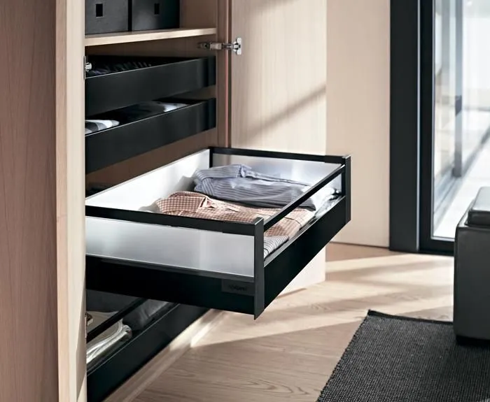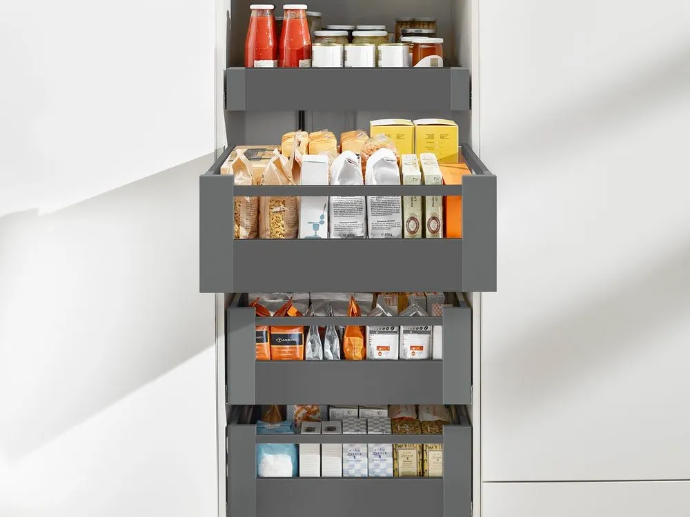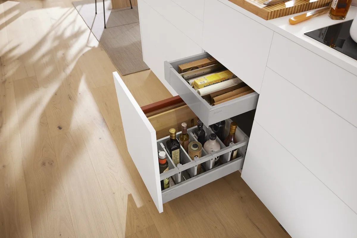 無論是搭配直桿還是加高側牆的抽屜,TANDEMBOX antaro 方桿金屬抽系列代表的是一種明朗、稜角分明的外觀風格。所有的零件在顏色上是互相匹配的,意在突出純粹的產品設計風格。
