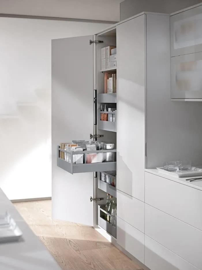 豪華金屬方桿抽屜的滑軌同樣是搭配BLUMOTION 緩衝阻尼,抽屜拉開時,滑順平穩,抽屜關閉時,輕柔緩衝安靜。使用壽命長,經過十萬次以上的開合耐用測試。不僅外型時尚美觀,更具實用性。