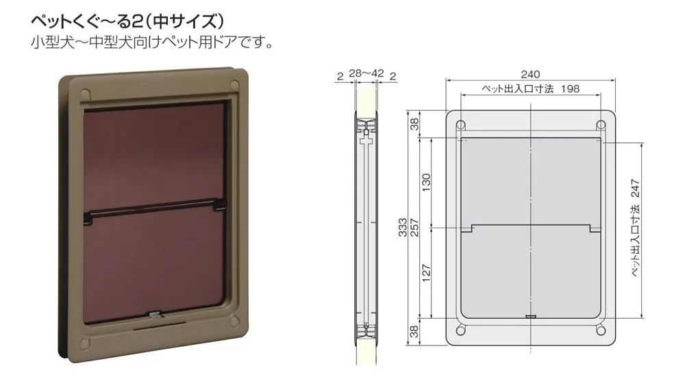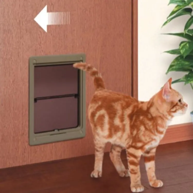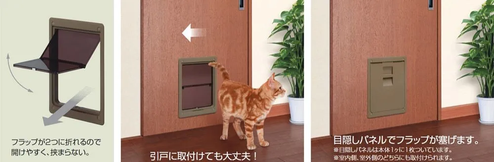 -由於門框壁厚較薄,不僅可用於平開門,也可用於推拉門。雙折擋板可緩衝推開時的衝擊力,防止寵物尾巴被卡住。 -擋板透過磁鐵準確的返回。 -配有一個蓋子用於隱藏螺絲。 -適用於適用於一般家居的木製家具(不適用於浴室)。