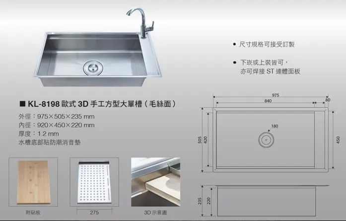 歐式3D手工方型大單槽(W1000mm櫃體適用)