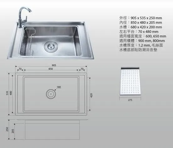 歐式小圓角多功能單槽(W1000mm櫃體適用)