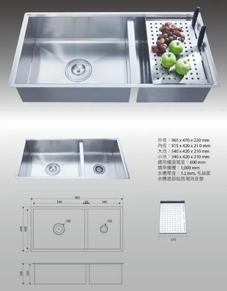 歐式手工方型雙槽(W1000mm櫃體適用)