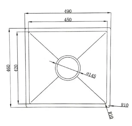 產品型號: KL-9449145孔徑中提材質:不鏽鋼 SUS304#x1.1T外徑尺寸: 490x460x220mm內徑尺寸: 450×420x220mm表面處理: 底貼消音墊加工方式: 上裝、下崁、焊接附屬配件: 無