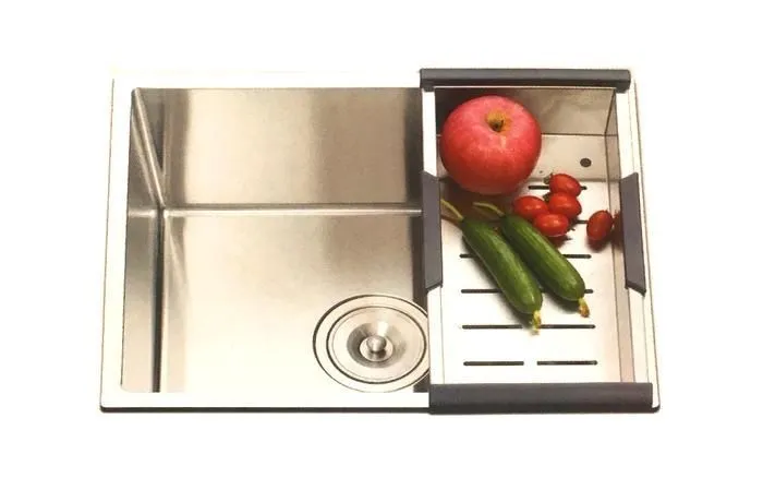 產品型號: KL-9456145孔徑中提材質:不鏽鋼 SUS304#x1.1T外徑尺寸: 560x460x220mm內徑尺寸: 520×420x220mm表面處理: 底貼消音墊加工方式: 上裝、下崁、焊接附屬配件: ST瀝水盆