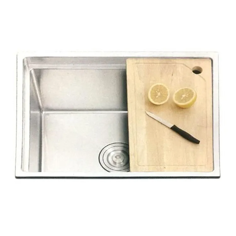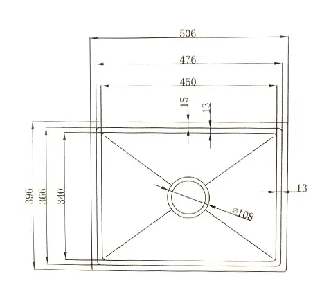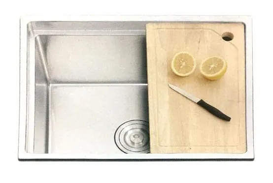 產品型號: KL-97502D 108孔徑小提材質:不鏽鋼 SUS304#x1.1T外徑尺寸: 506x396x220mm內徑尺寸: 450×340x220mm表面處理: 底貼消音墊加工方式: 上裝、下崁、焊接附屬配件: 木砧板