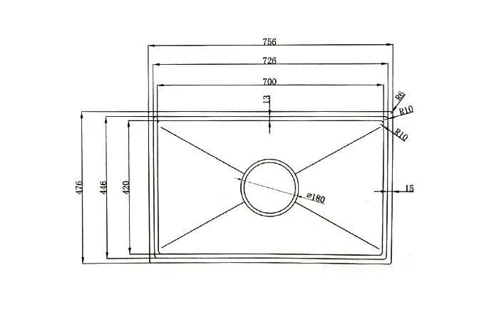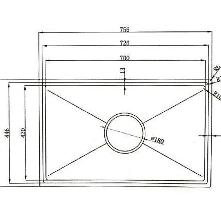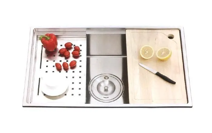 2D 108孔徑小提材質:不鏽鋼 SUS304#x1.1T外徑尺寸:756x476x220mm內徑尺寸:700x420x220mm表面處理:底貼消音墊加工方式:上裝、下崁、焊接附屬配件: ST托盤、木砧板