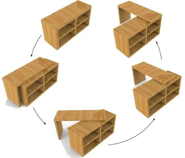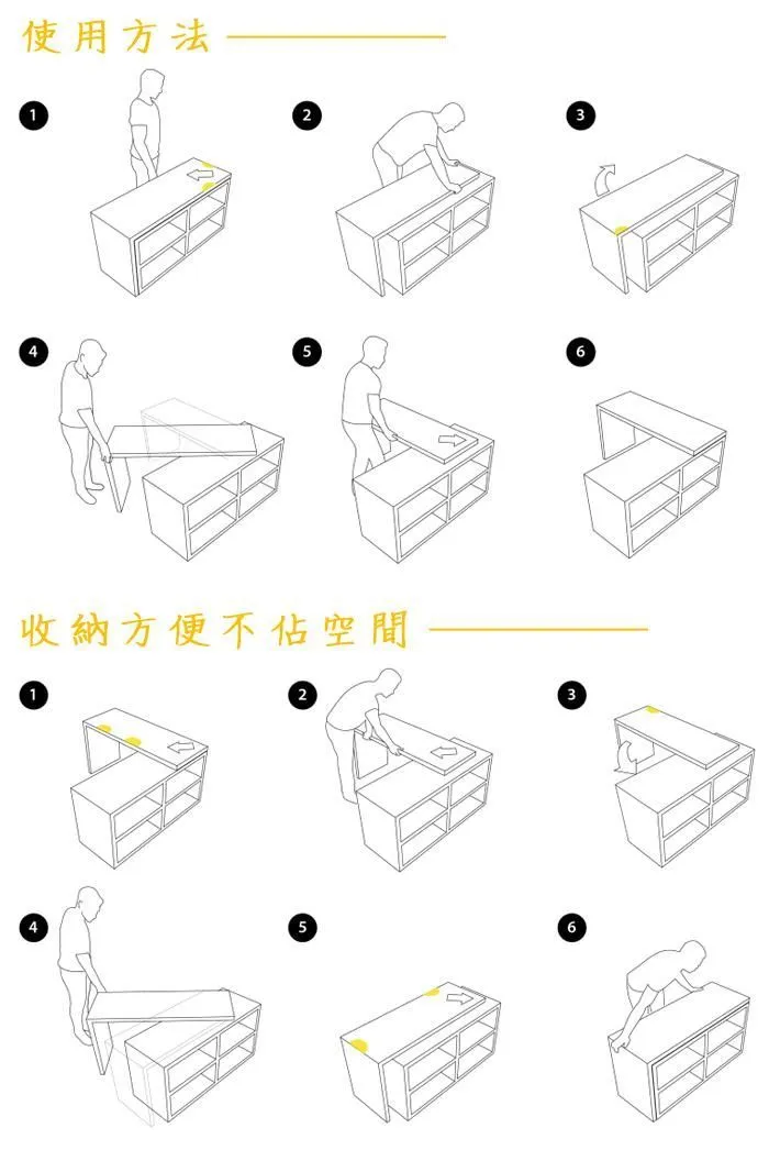 視需求能將桌面隱藏或橫移伸展開來,能節省空間及創造家具的多變性。