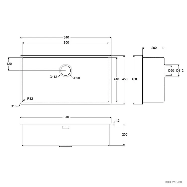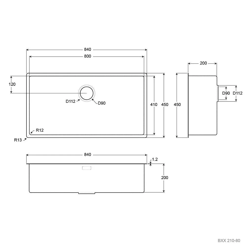 安裝尺寸:W820 x D430 mm (R6/上嵌)/W800 x D410 mm (R12/下嵌)/W840 x D450 mm (R13/平接)