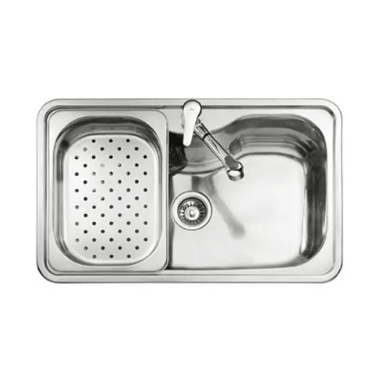 外徑尺寸:W800 × H200 × D500 mm內徑尺寸: W775× D475 mm厚度: 0.9 mm安裝方式: 上嵌專用水槽海灣造型產品特色: 溢水孔設置,排水不煩惱槽深20公分以上,大型鍋具適用直角圓邊不卡垢特選304不銹鋼標準配備: 不鏽鋼滴水籃 / 台式提籠(有菜渣籃設計)