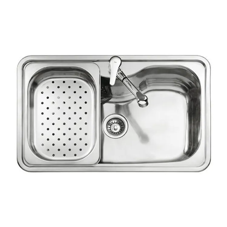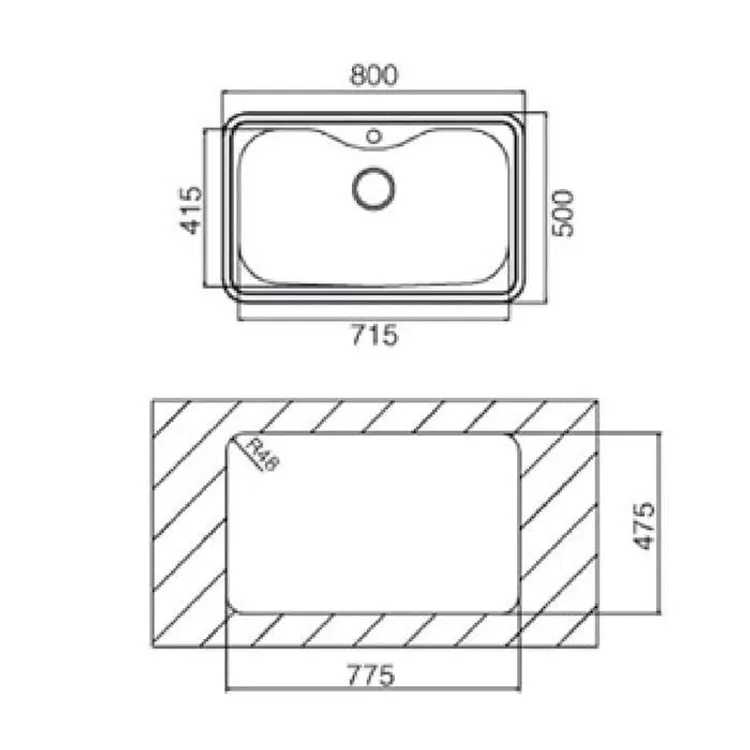 材質: 304不鏽鋼產品尺寸: W800xH200xD500 mm安裝尺寸: W775xD475 mm適用櫃體: W900mm厚度:0.9 mm加工方式:上嵌附屬配件: 不鏽鋼滴水籃、台式提籠 附屬配件:
