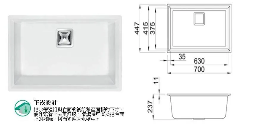 與施華落世奇同等級的玻璃結晶為素材,添加於花崗岩石粉中和石英顆粒綜合,搭配〝G.P.S.〞系統製程,奠定ELLECI水槽工藝中經典領導地位。下崁設計:把水槽邊沿與台面的銜接移至面板的下方,使外觀看上去更舒服,清潔時可直接把台面上的殘餘一掃而光沖入水槽中。