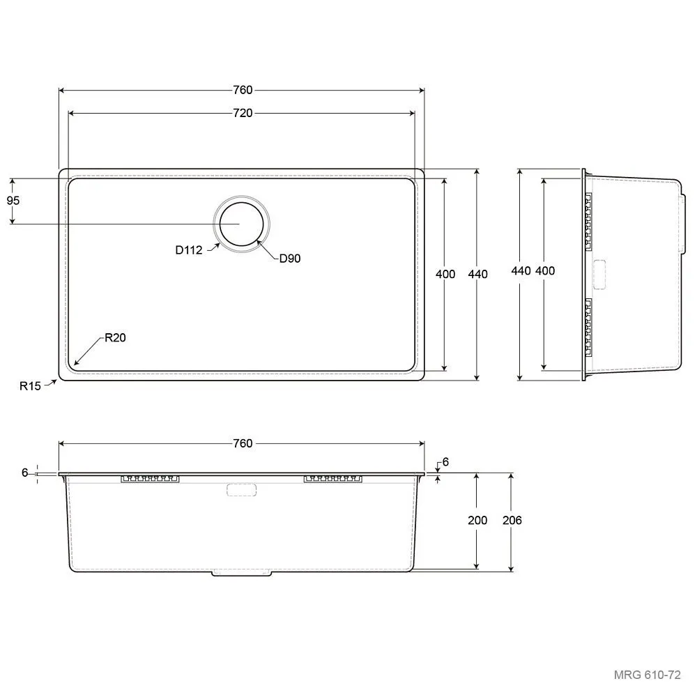 安裝尺寸:W740 x D420 mm (上嵌)/W720 x D400 mm (下嵌)/ W760 x D440 mm (R15/平接)