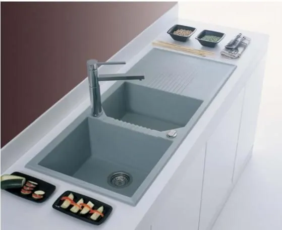 獨家專利以80%花崗岩顆粒,添加專利「金屬微粒」與「石英顆粒」全球獨一無二專利配方原料,搭配〝G.P.S.〞生產系統,水槽於生產過程中每15分鐘翻轉一次,最高溫450度,1小時共4次翻轉製程,使材質充份均勻混合,使每顆水槽表面及底部皆光滑如一,達到墨氏等級,具高抗衝擊、不脆化、不吃色、不冒汗,抗撞擊達300KG,抗高溫達350℃等實用功能。