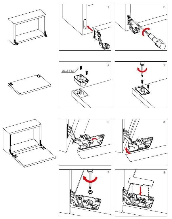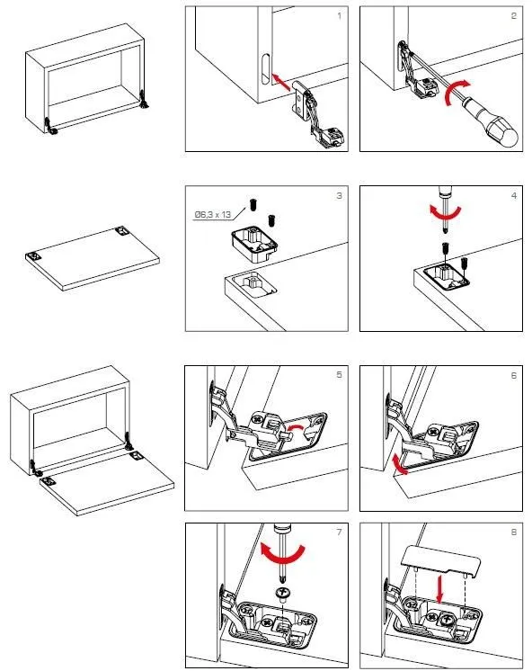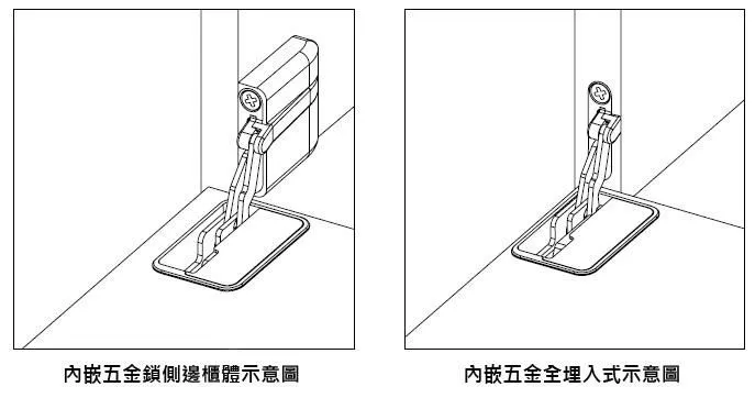產品說明:歐洲進口下掀內嵌式鉸鍊,可做全埋入式(無需誘l)或鎖櫃體側板(需搭配誘l)。面板下掀時,面板內側無任何突出物。適用櫃體門片厚度18mm到40mm。安裝方向可水平、垂直或傾斜。主體為鎳銀色,誘l顏色有白色、咖啡色、黑色及灰色,目前白色有庫存,其他需期貨。P.S. 此產品需搭配下掀五金,如: 歐洲進口重型下掀鋼索吊桿、中型鋼索吊桿、輕型鋼索吊桿。 相關影片