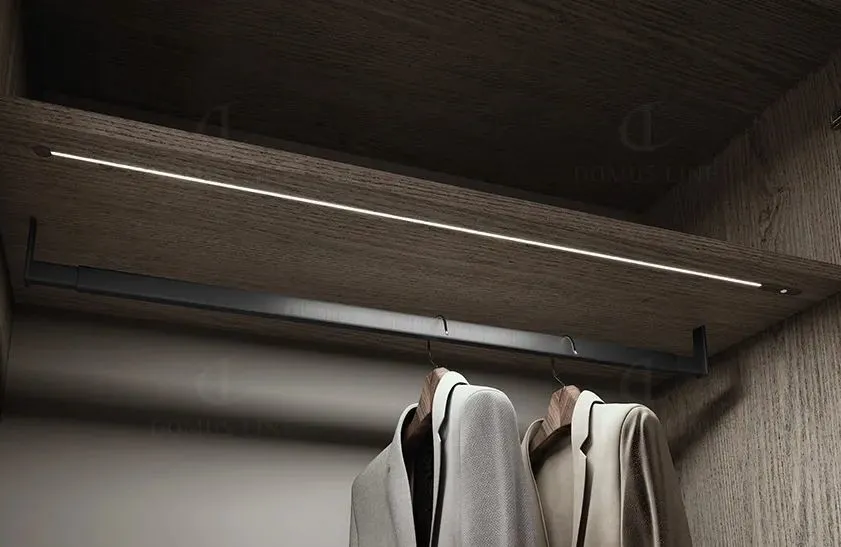 義大利進口可裁切無光點矽膠LED燈條,特殊無光點設計能確保一致性的光源投射,且具有高照明性能,非常適合安裝於衣櫃,同時也適用於各種不同的要求最小挖槽空間及多變地照明設計。
