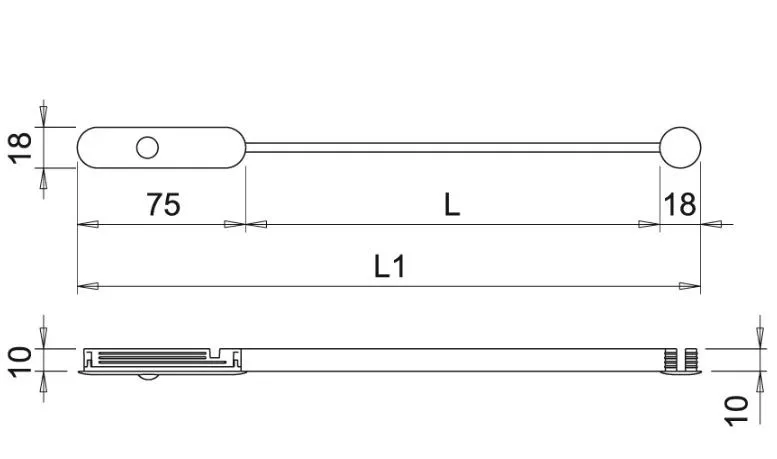 適合安裝於櫃體側板或上櫃底板,可做直線或曲線型設計,挖槽只需寛4 x 8mm深,能於板面齊平,長度有100跟300cm。