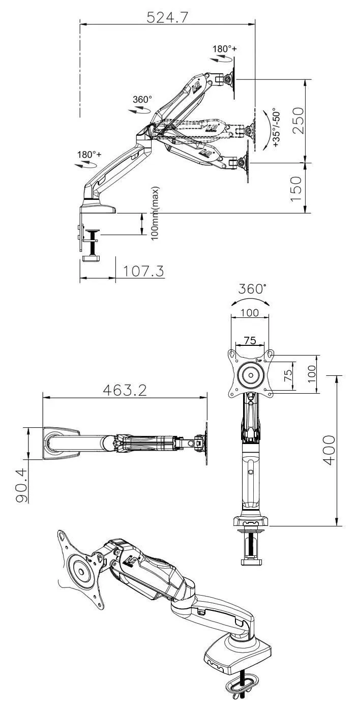 符合VESA規格 7.5×7.5cm、10 x 10cm。