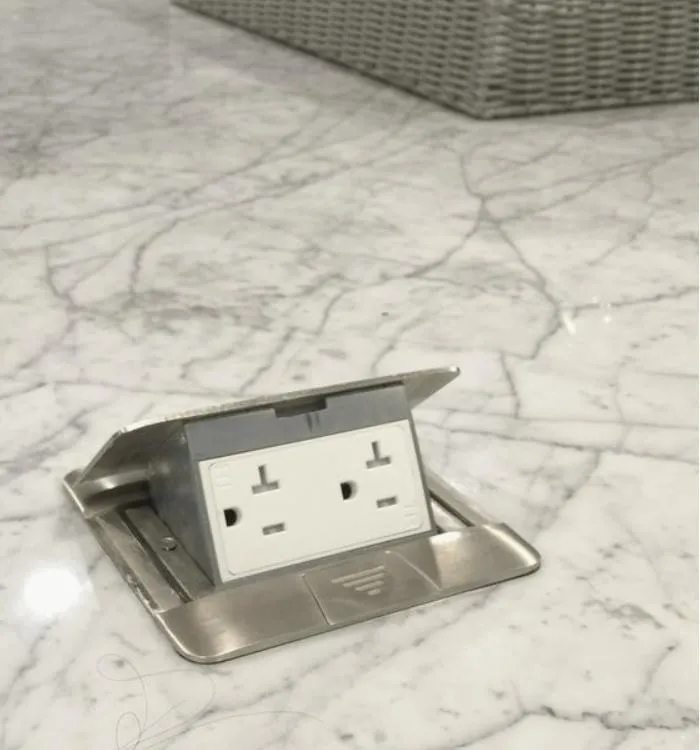 兩用式緩衝插座提供更符合人體工學的設計,在使用上完全不費力,操作容易,輕輕按壓,插座緩衝上升,外型質感好,非市面上一般傳統地插可相比。產品整體高度較低(約7.8公分),即使安裝於桌面也可搭配裝潢不突兀。也能應用安裝在水泥地板,高架地板或桌面。有一系列的相關插座配件(如台規插座、電話插座、網路插座及數據USB插座),根據需求自由搭配組合。