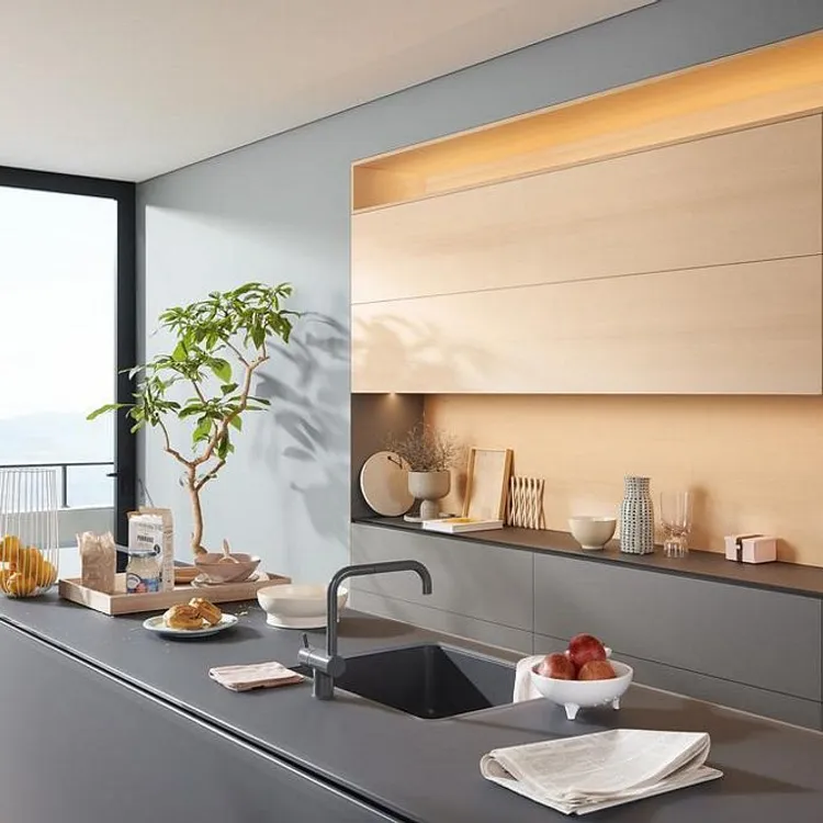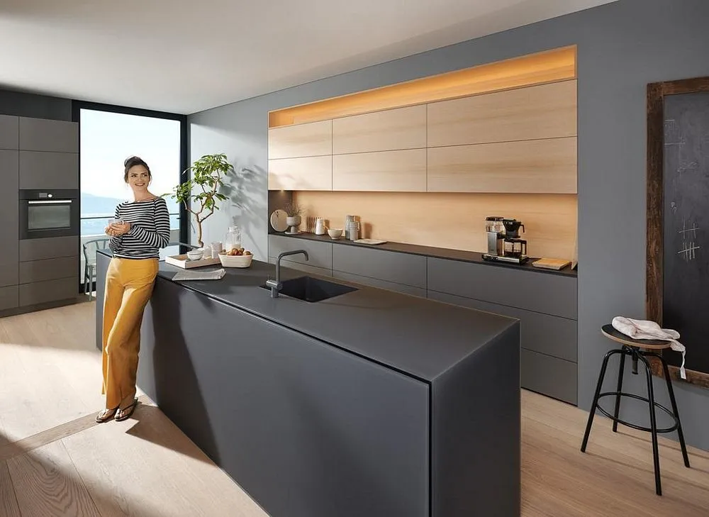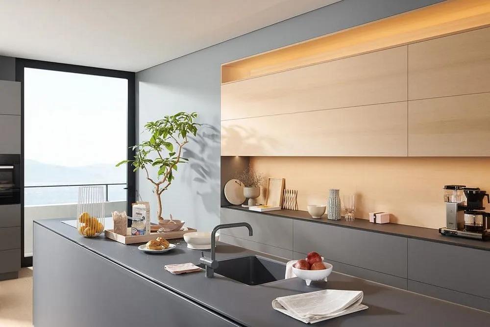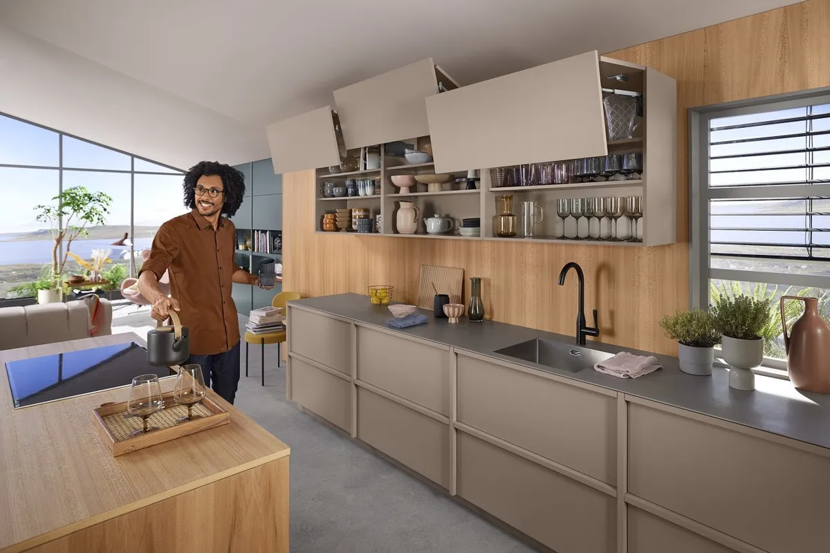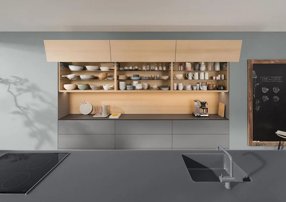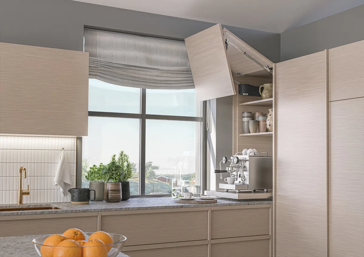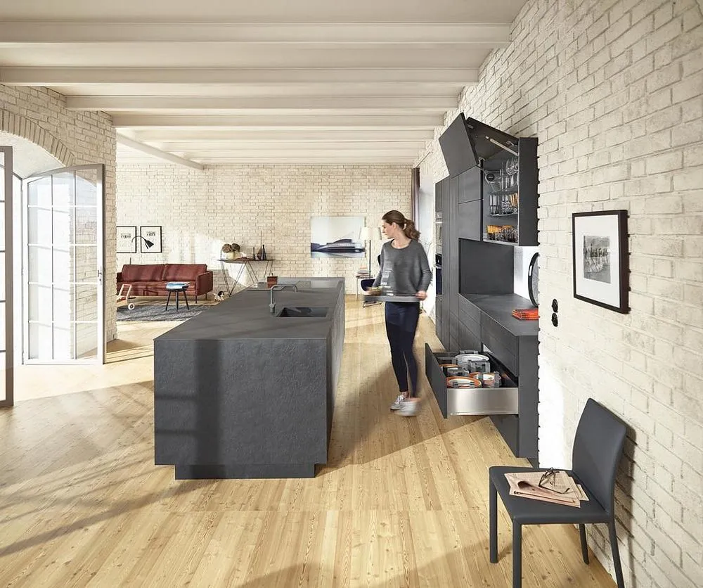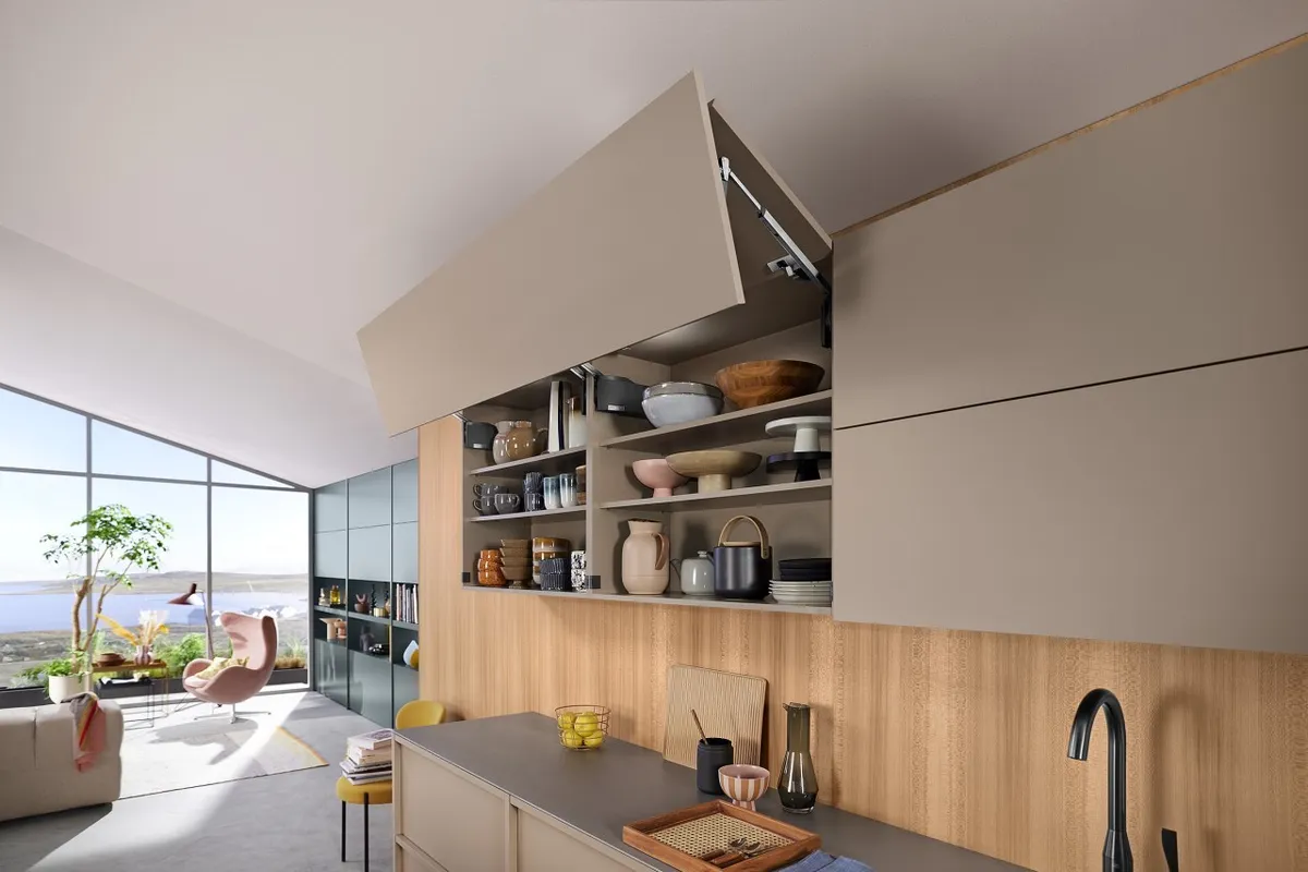 上掀折門只需微小的操作力,便可達到舒適開啟與輕柔關閉的效果。兩片折門可依設計,搭配不同材質與不同大小高度,不管是木作門,鋁框門還是其他金屬材質,blum上掀折門提供您許多設計的選擇。 另外具有防夾手與緩衝裝置,能提升廚具更多地安全與品質。